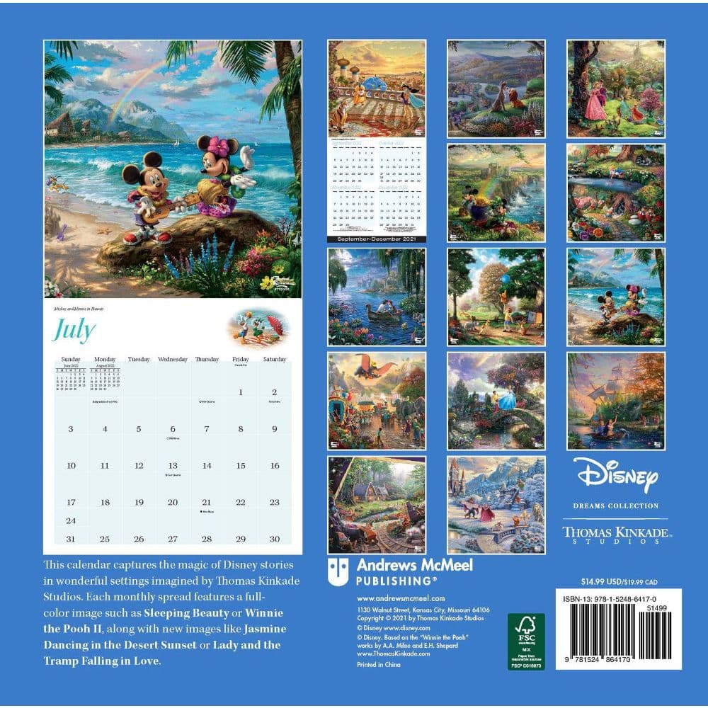 Thomas Kinkade Studios carries on the artists. Printed on glossy paper and fitted with an easel stand for desk or tabletop display this calendar makes a lovely gift or addition to. This calendar comes packaged in a sturdy full-color matching envelope. 2021 Family Wall Calendar - Keep the family on time and organized with the Disney Dreams 2021-2022 Family Wall Calendar from AndrewsMcMeelPublishing featuring images that capture the timeless magic of classic Disney stories and their delightful characters in settings imagined by Thomas Kinkade Studios.
